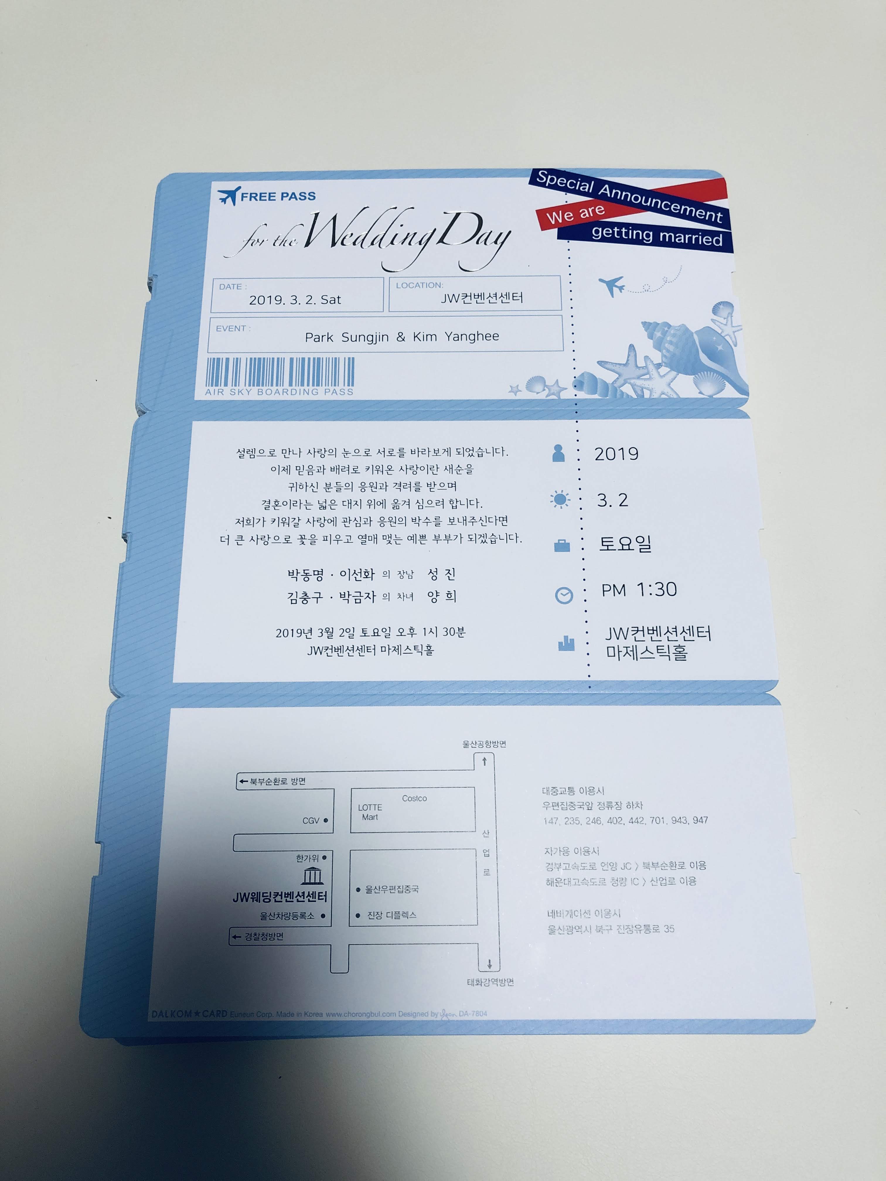 사람들이 청첩장 접기가 제일 힘들다고 했는데 티켓청첩장은 편하게 접을수 있어서 좋았어요