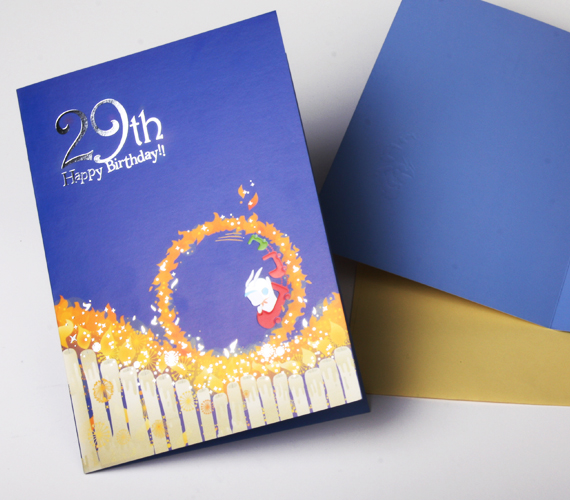 | 29¼¼ »ýÀÏ ±â³ä ÃàÇÏÄ«µåÀÔ´Ï´Ù. ¹Ý¦¹Ý¦ Ÿ¿À¸£´Â ÃкһçÀÌ·Î ·Ñ·¯ÄÚ½ºÅ͸¦ Ÿ°íÀÖ´Â Åä³¢°¡ ±×·ÁÁø µðÀÚÀÎ ÀÔ´Ï´Ù. ¹Ý¦ÀÌ´Â Àº¹Ú°¡°øÀ¸·Î µðÅ×ÀÏÀ» ´õÇß½À´Ï´Ù |