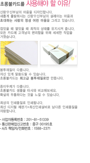 ûøÀåÀº Ä«µå1Á¾/ºÀÅõ2Á¾, ÃÊ´ëÀå.ÃàÇÏÄ«µå.¿¬ÇÏÀå Ä«µå1Á¾/ºÀÅõ1Á¾ ¹«·á ÀμâÇØ µå¸³´Ï´Ù. (Àü¼¼¹ö½º ¹®¾È Ãß°¡ µîÀ¸·Î Àμâ 1Á¾ Ãß°¡½Ã 5,000¿øÀÌ Ãß°¡µË´Ï´Ù.) |