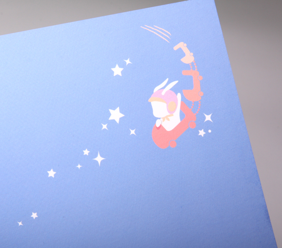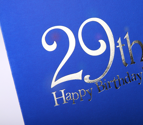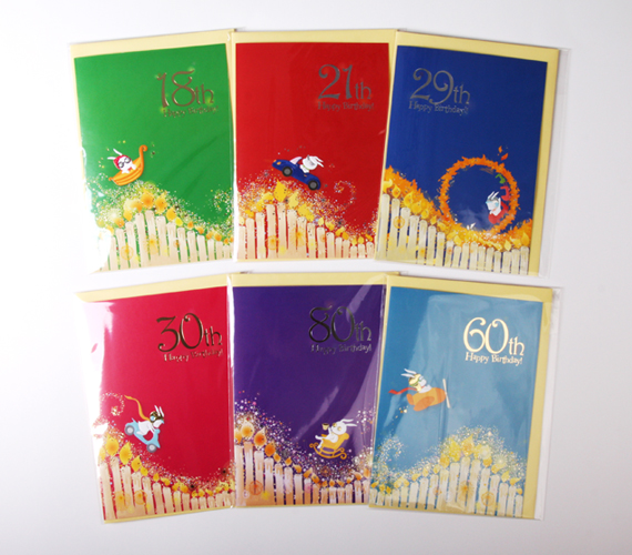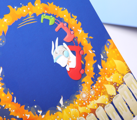 29세 생일 기념 축하카드입니다. 반짝반짝 타오르는 촛불사이로 롤러코스터를 타고있는 토끼가 그려진 디자인 입니다. 반짝이는 은박가공으로 디테일을 더했습니다