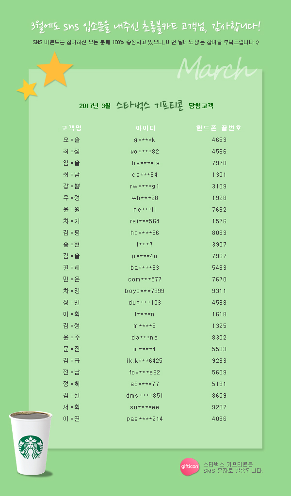 2017³â 3¿ù ¡Ú½ºÅ¸¹÷½º ±âÇÁƼÄÜ¡Ú ´ç÷ÀÚ ¸í´ÜÀÔ´Ï´Ù.