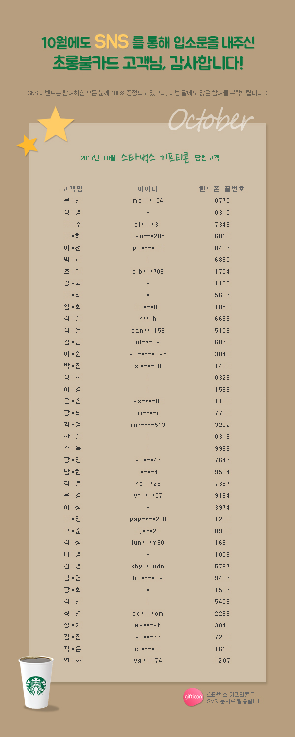 2017³â 10¿ù ¡Ú½ºÅ¸¹÷½º ±âÇÁƼÄÜ¡Ú ´ç÷ÀÚ ¸í´ÜÀÔ´Ï´Ù.