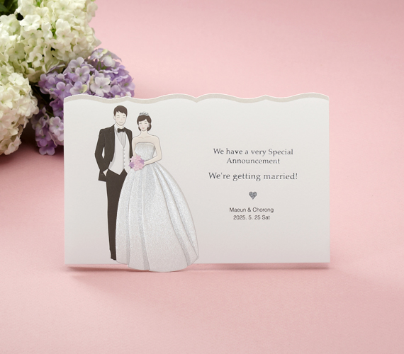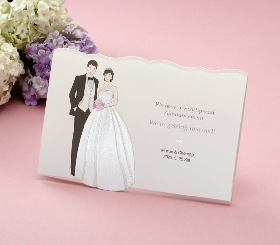 | ½Å¶û ½ÅºÎÀÇ Ä³¸¯ÅͰ¡ Ư¡ÀΠûøÀåÀ¸·Î ij¸¯ÅͰ¡ Àִ ǥÁö¿¡ ½Å¶û ½ÅºÎÀÇ À̸§°ú ³¯Â¥¸¦ ³Ö¾î ÀμâÇÏ´Â ¹æ½ÄÀÇ Ã»Ã¸ÀåÀÔ´Ï´Ù. ij¸¯ÅͰ¡ ¼¶¼¼ÇÏ°Ô Ç¥ÇöµÇ¾î ¸Å¿ì °í±Þ½º·¯¿î ´À³¦À» Áִ ûøÀåÀÔ´Ï´Ù. |